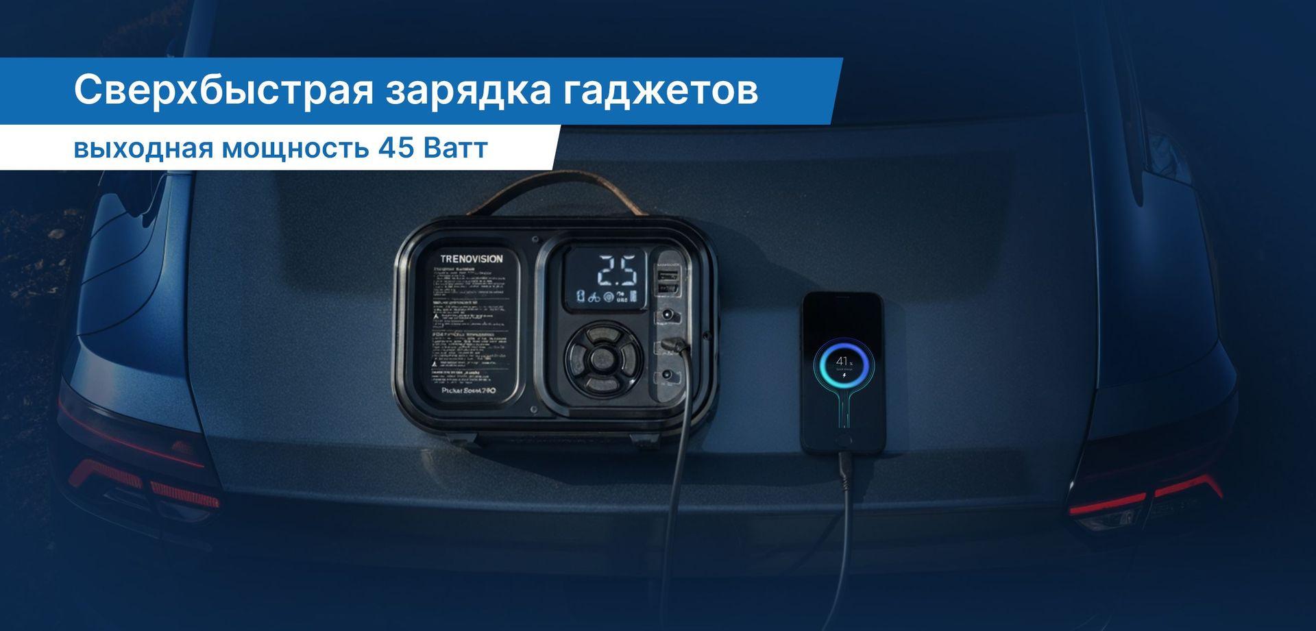 Технология сверхбыстрой зарядки мощностью 45 Вт позволяет заметно сократить время пополнения энергии смартфонов, планшетов и другой электроники. Это особенно удобно в дороге, когда важно быстро восстановить заряд и сохранить доступ к связи, навигации и необходимым приложениям без лишнего ожидания.
