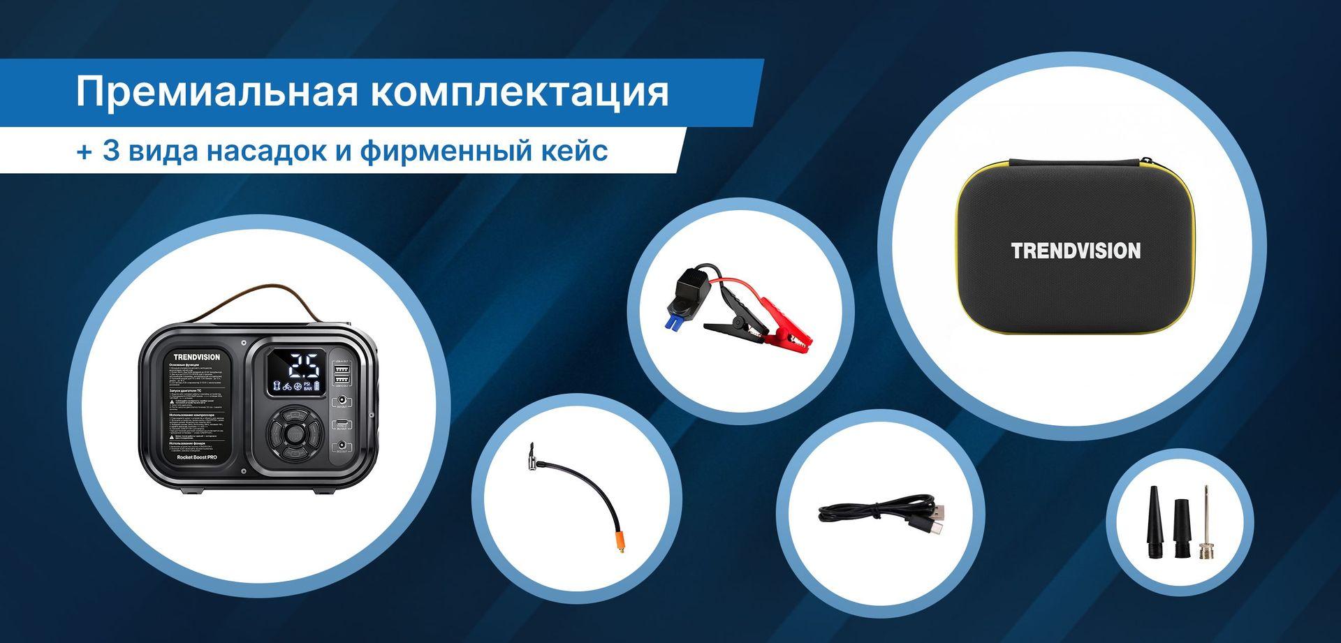 Набор включает все необходимые аксессуары для комфортного использования в дороге. В комплект входит фирменный кейс, насадки для компрессора и другие продуманные элементы, которые делают устройство практичным, удобным и подчёркивают его премиальное исполнение.