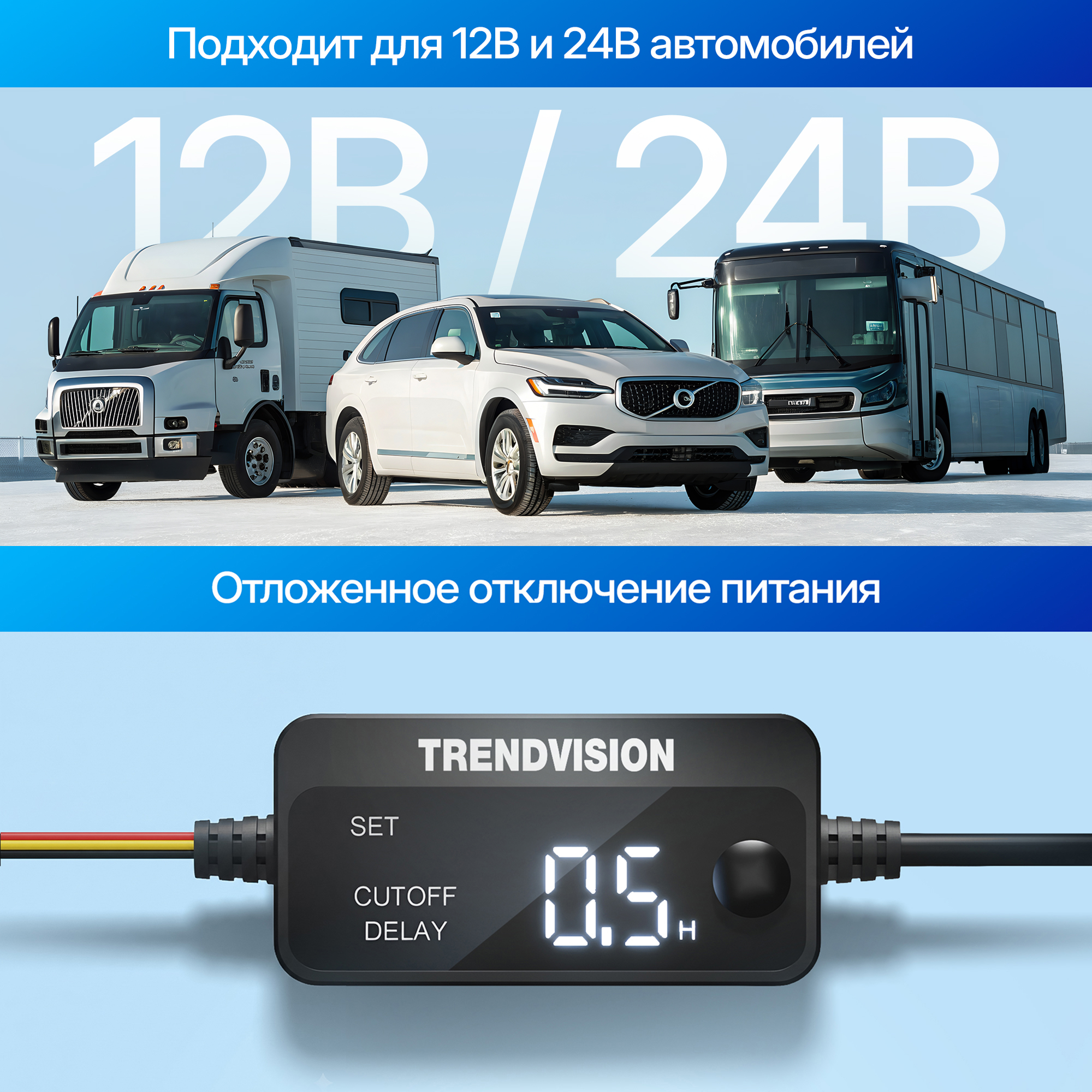 Умный контроллер питания автоматически следит за состоянием АКБ и защищает его от разряда. Вы можете задать порог напряжения (11.6В - 12.4В / 23.2В - 24.8В), при котором HardWare Kit отключит питание подключённого оборудования (видеорегистратора), а также настроить отключение по таймеру. Это позволяет безопасно использовать парковочный режим и длительную съёмку, не рискуя остаться с разряженным аккумулятором.