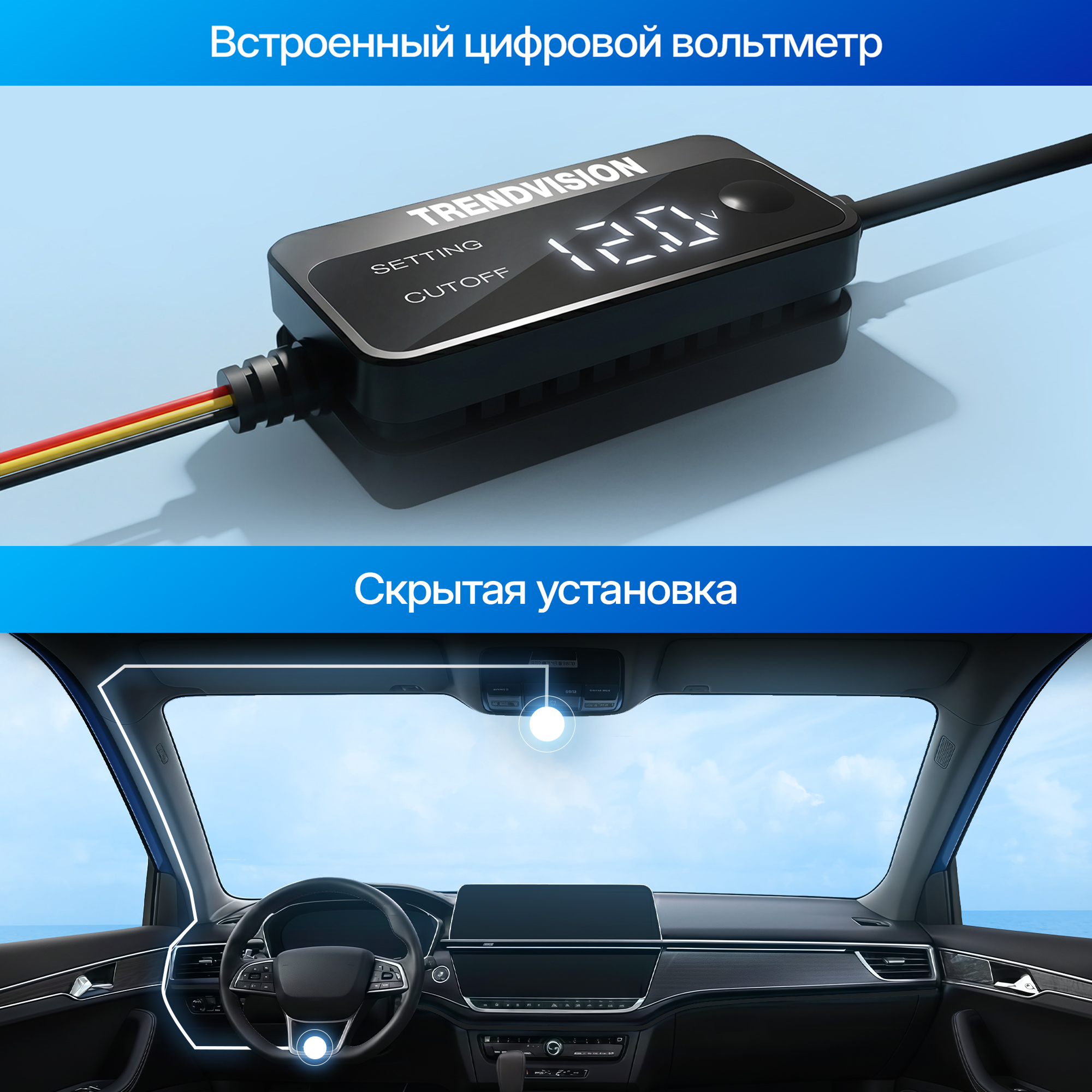 Встроенный цифровой вольтметр в режиме реального времени отображает напряжение бортовой сети автомобиля. Это позволяет наглядно контролировать состояние аккумулятора, корректно настраивать пороги отключения питания и быть уверенным, что видеорегистратор работает безопасно, не создавая риска разряда АКБ.