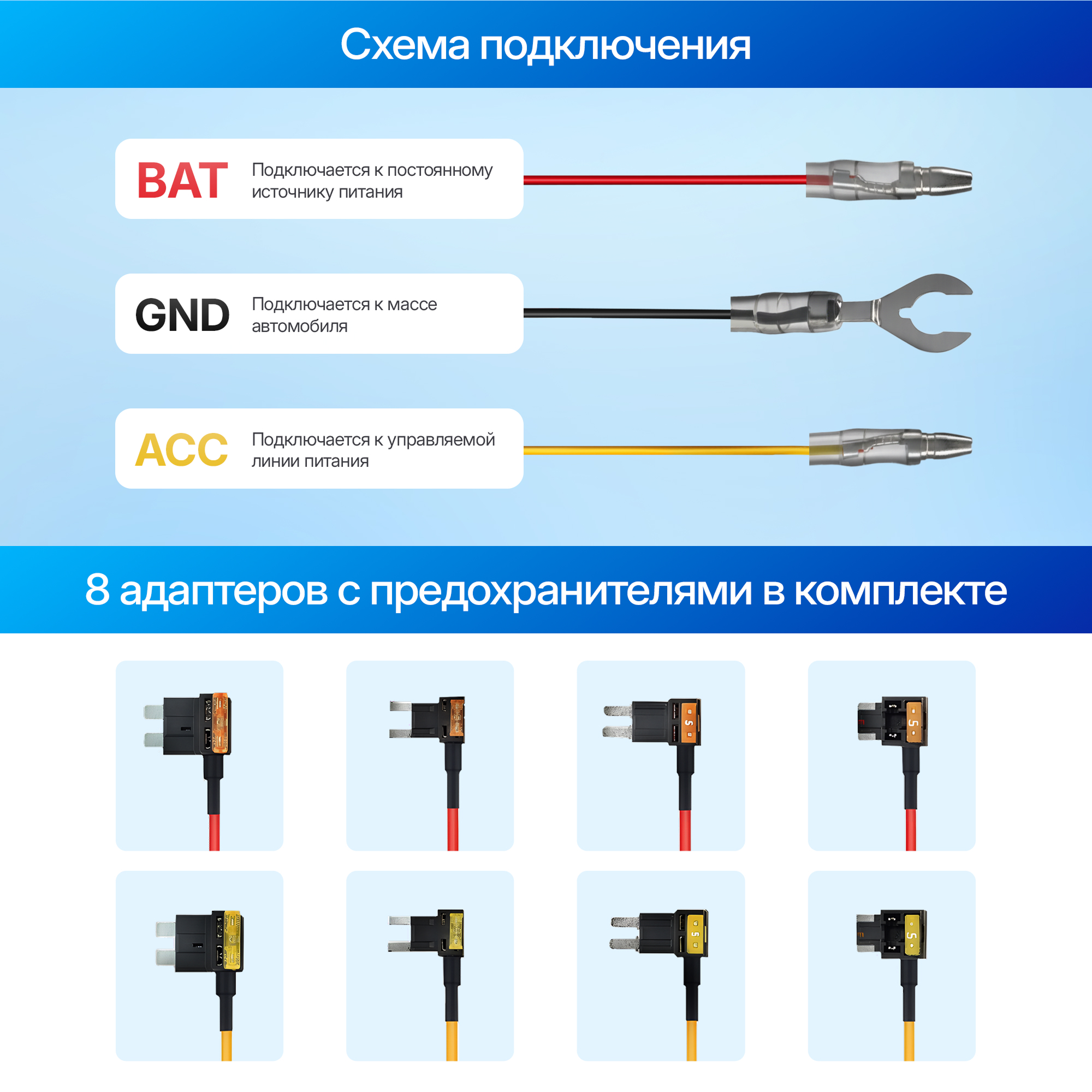 Такое разделение линий позволяет корректно управлять режимами работы видеорегистратора, обеспечивает защиту аккумулятора и упрощает установку даже при скрытом монтаже.