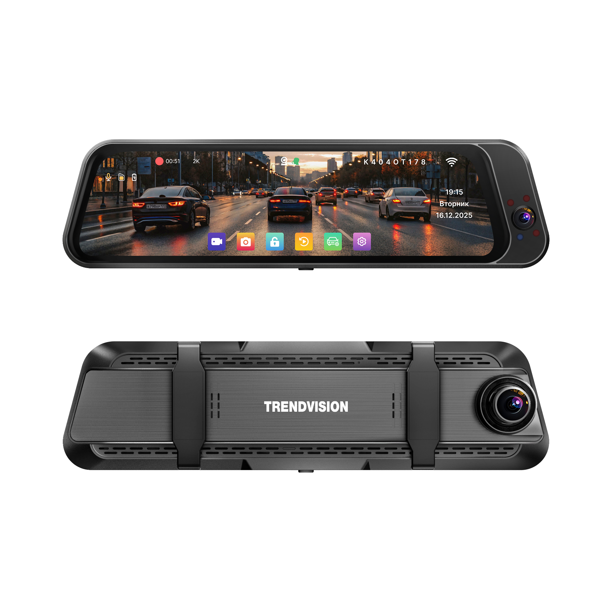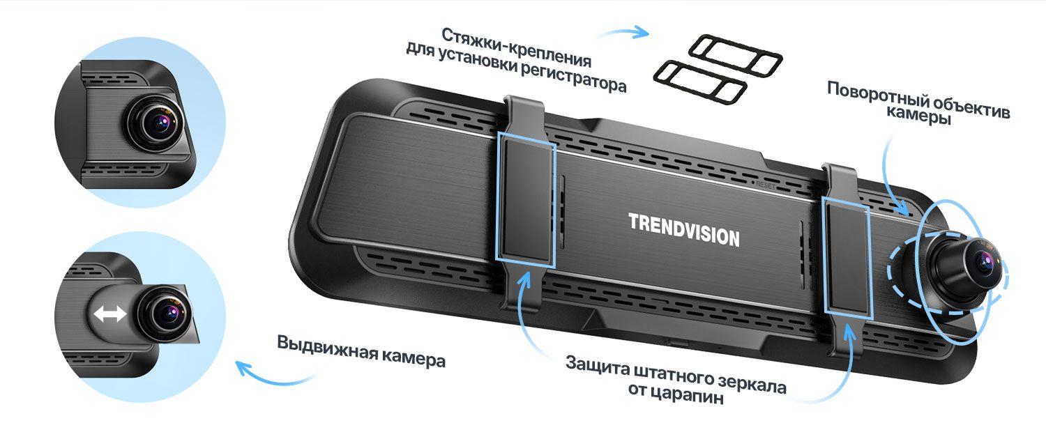 TrendVision MR-360 оснащён большим сенсорным IPS-дисплеем с диагональю 9.66", который упрощает управление и просмотр изображения с камер.