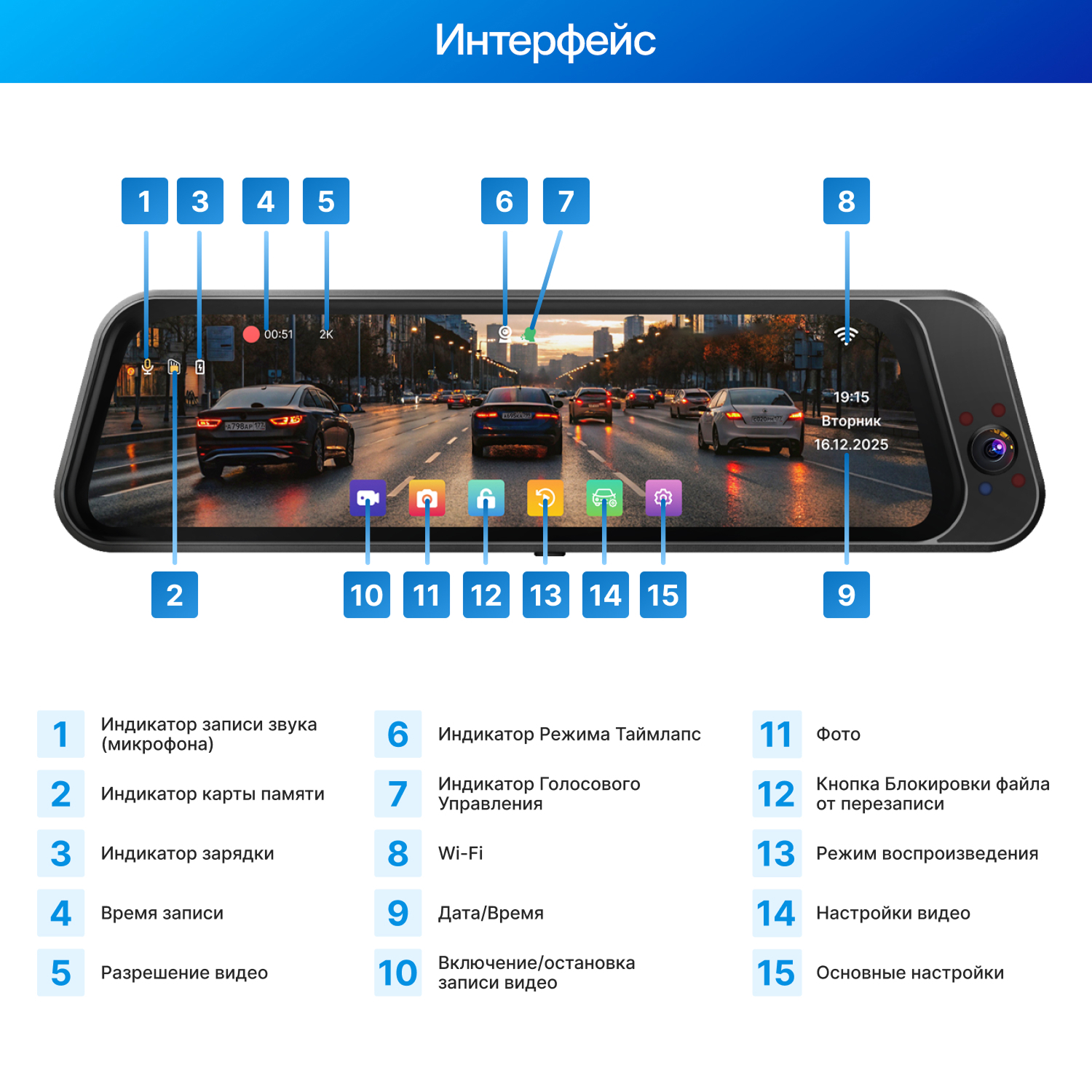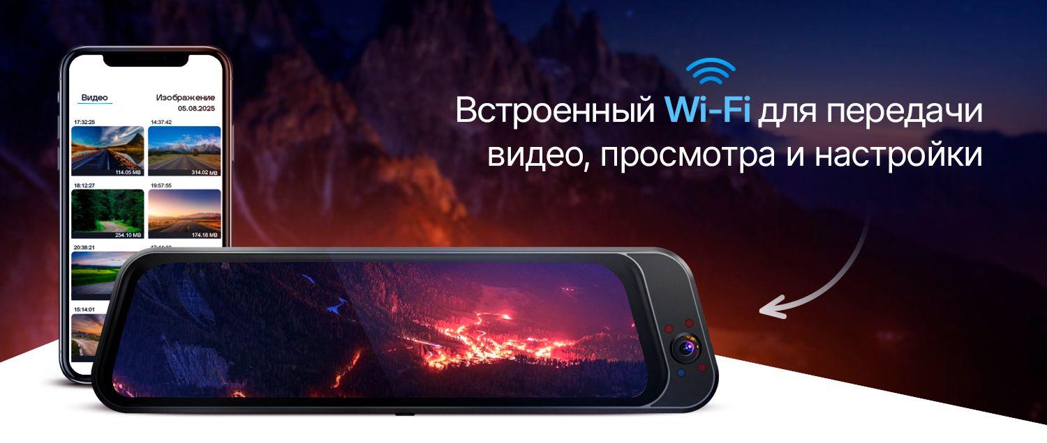 Встроенный Wi-Fi позволяет просматривать передавать видео и менять настройки со смартфона через приложение Viidure.