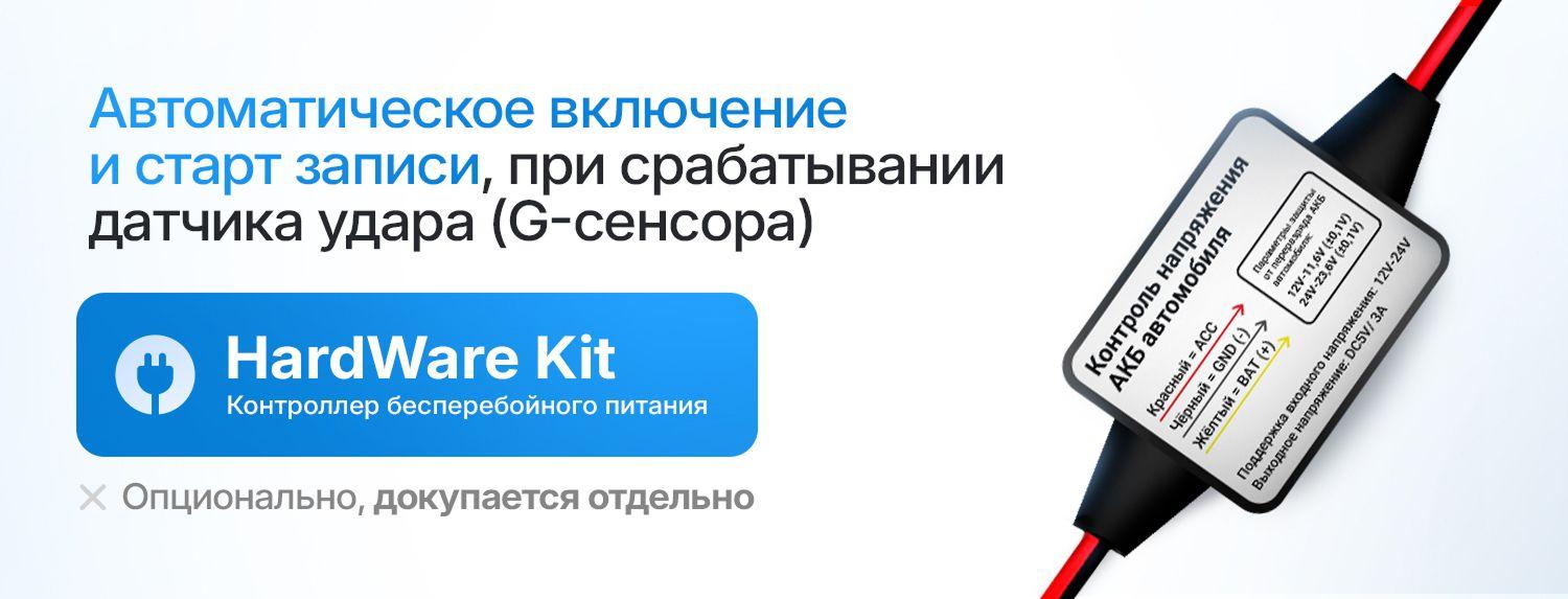 После отключения внешнего питания устройство переходит в «спящий» режим и активирует запись при срабатывании датчика удара. Парковочный режим работает при подключении через кабель прямого подключения HardWare Kit.