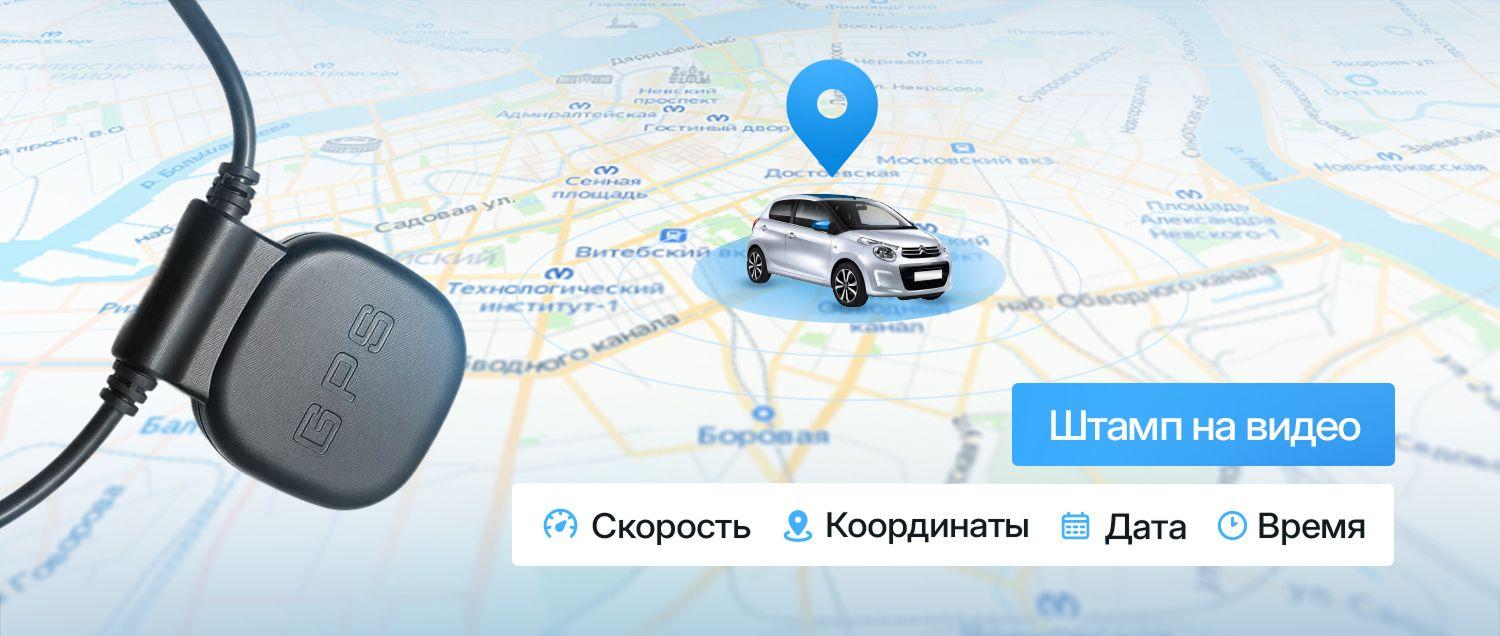 Выносной GPS-модуль помогает синхронизировать координаты и скорость, а также фиксировать на видео дату и время.